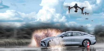 这场挑战可不简单。机场跑道长1000米,被两台洒水车反复浇灌,变成了一条湿滑的“水路”。这就像我们平时开车遇到暴雨,路面湿得像抹了油,稍不小心就可能打滑。星纪元ES偏偏要在这时候接受考验,还要面对天上飞来的“炸药包”。四架无人机组成“轰炸机群”,在车子高速通过时,从不同角度扔下道具,考验车子的反应和操控。这场面,比我们日常开车遇到的任何突发状况都要刺激!